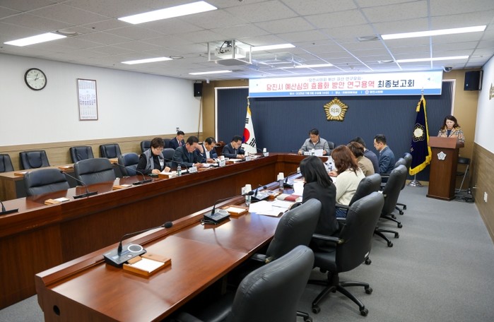 [코리아 이슈저널=홍춘표 기자] 당진시의회 예산 ‧ 결산 연구모임이 11월 5일 의회 대회의실에서 '당진시 예산심의 효율화 방안 연구용역' 최종보고회를 개최했다고 전했다.