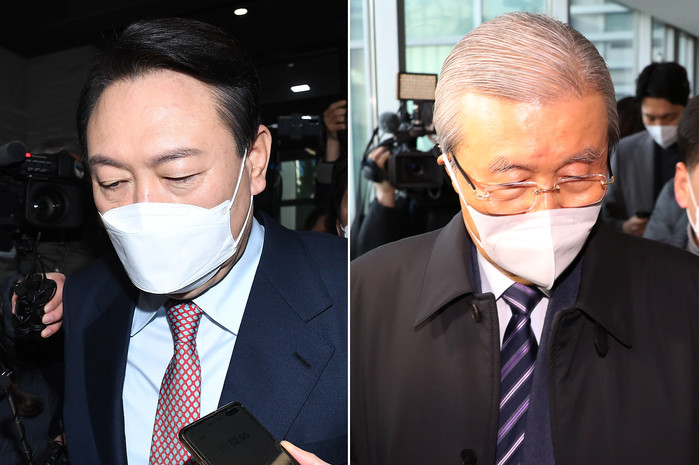 | ▲ 국민의힘 윤석열 대선 후보가 '선대위 해산' 방침을 세우면서 김종인 총괄선대위원장과 사실상 결별 수순에 들어갔다. 사진은 5일 쇄신안을 발표하기 위해 서울 여의도 당사로 들어서는 윤석열 후보(왼쪽)와 자신의 사무실로 출근하는 김종인 총괄선대위원장. 2022.1.5 [국회사진기자단] |