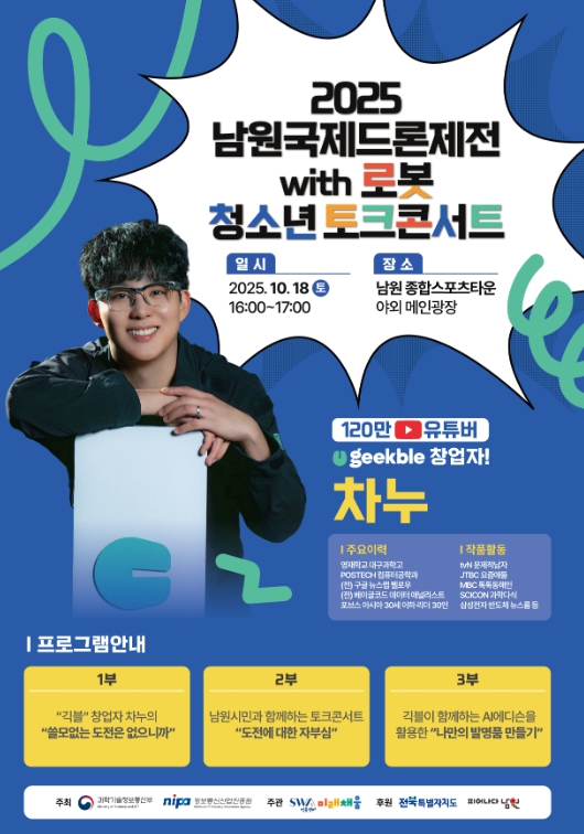 이번 행사는 ‘2025 남원 국제드론제전 with 로봇’과 함께 연계 개최되며, 지역의 미래 기술 교육 활성화와 시민 참여 확대에 중요한 역할을 할 것으로 기대된다.