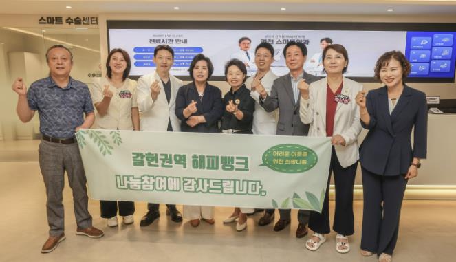 ‘해피뱅크’는 갈현권역(갈현·별양) 지역사회보장협의체가 주관하는 특화사업으로, 기업과 상점 등의 기부를 통해 복지 사각지대에 놓인 이웃을 돕기 위해 운영되고 있다. 과천스마트안과의 후원금은 별양동 취약계층 지원에 사용될 예정이다.