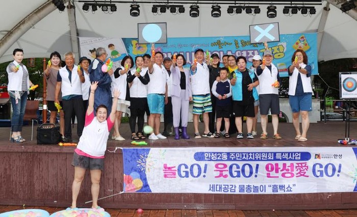 [코리아 이슈저널=김윤영 기자] 안성2동 주민자치위원회는 지난 7월 19일 내혜홀광장 야외무대에서 ‘놀GO, 웃GO, 안성愛 GO’라는 슬로건 아래 어린이들과 함께하는 여름 물놀이 행사를 개최했다.