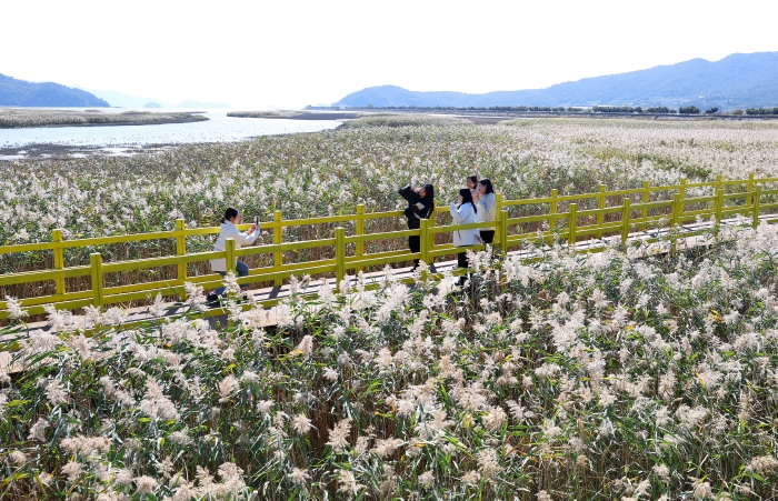 | ▲ 제10회 강진만 춤추는 갈대축제가 열린 가운데 강진만 갈대밭을 찾은 관광객들이 가을의 정취를 맘껏 느끼고 있다. |