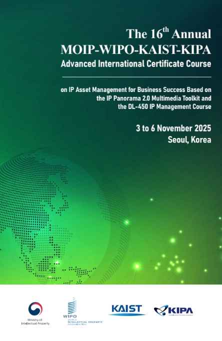 [코리아 이슈저널=최용달 기자] 지식재산처는 세계지식재산기구(WIPO) 및 한국발명진흥회(KIPA)와 공동으로 11월 3일~ 6일까지 한국지식재산센터(서울 강남구)에서 '국제 지식재산 전문가 인증과정(AICC)'을 개최한다.