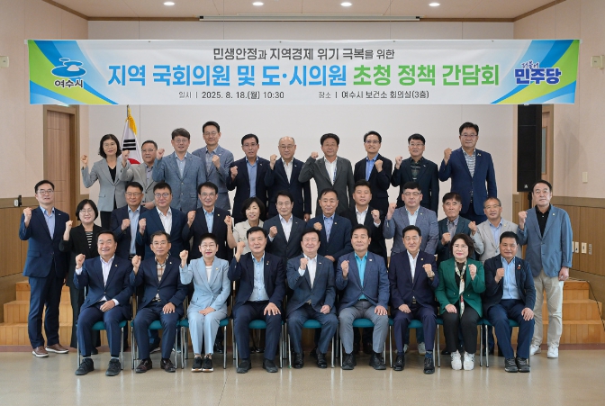 [코리아 이슈저널=김종오 기자] 여수시는 지난 18일 보건소 회의실에서 지역 국회의원과 도의원, 시의회 의장단을 초청해 정책 간담회를 열고 지역의 주요 현안과 국·도비 지원사업을 논의했다.