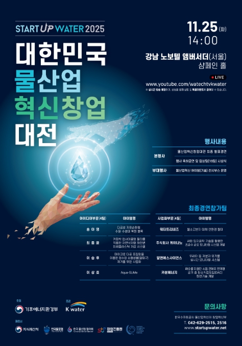 ‘대한민국 물산업 혁신 창업대전 2025’ 최종 경연 및 시상식 11월 25일 개최