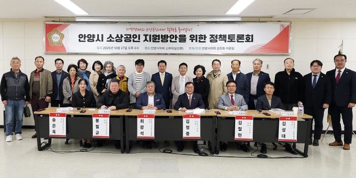 [코리아 이슈저널=홍춘표 기자] 안양시의회 김정중 의원(국민의힘, 안양1·3·4·5·9동)은 10월 27일 오후 2시 시의회 소회의실에서 ‘안양시 소상공인 지원방안을 위한 토론회’를 개최했다. 이번 토론회는 지역경제의 근간인 소상공인의 현실을 진단하고, 실질적이고 지속 가능한 지원정책을 모색하기 위해 마련됐다.
