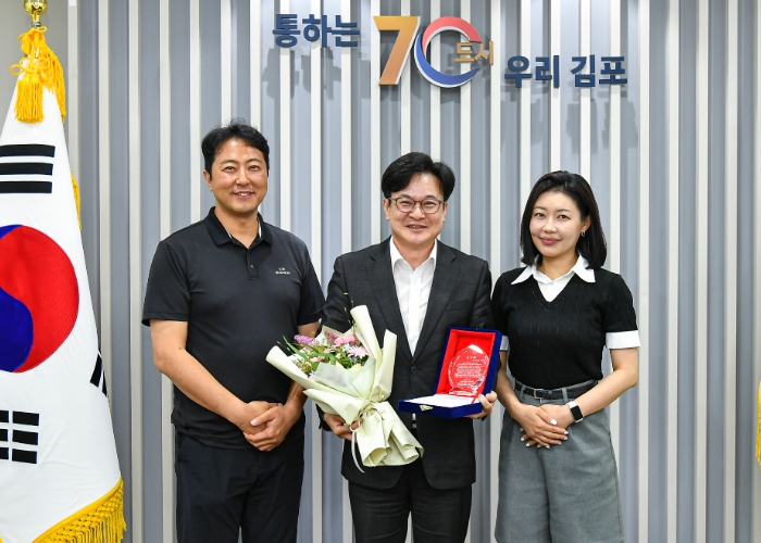 [코리아 이슈저널=홍춘표 기자] 김병수 김포시장이 23일 향산리 힐스테이트리버시티 1단지, 2단지 입주자대표위원회로부터 시내버스 70C번 정규노선 신설의 적극 추진에 대한 감사의 표시로 주민들의 마음을 담은 감사패를 전달 받았다고 밝혔다.