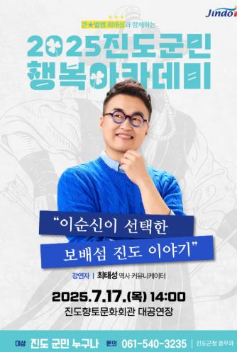 김희수 진도군수는 “이번 군민행복 아카데미를 통해 군민들의 자긍심을 높이고, 배움의 즐거움을 제공할 예정이다”라며, “앞으로도 군민의 행복과 성장을 위한 사업을 지속적으로 확대해 나가겠다”라고 말했다.