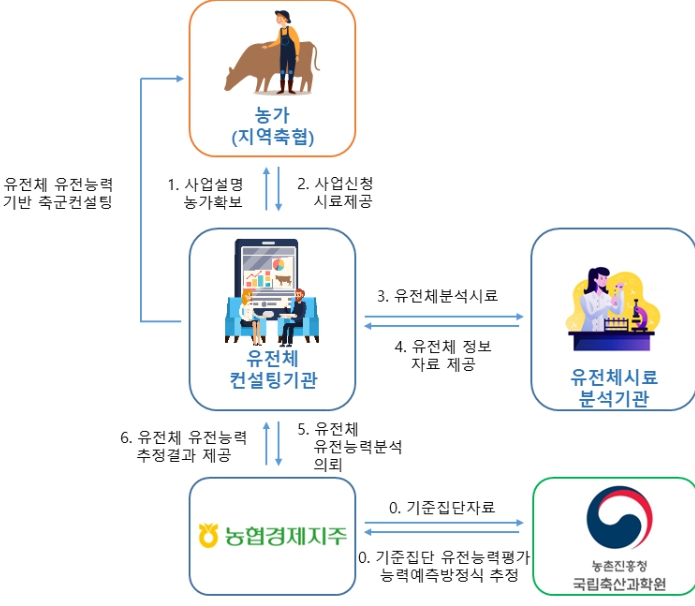 | ▲ 한우 암소 유전체 유전능력 예측 서비스 체계도 |