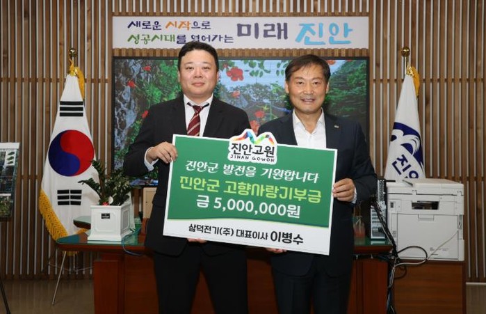 [코리아 이슈저널=김종오 기자] 삼덕전기(주) 이병수 대표이사는 지난 25일 진안군에 고향사랑기부금 500만원을 전달했다.