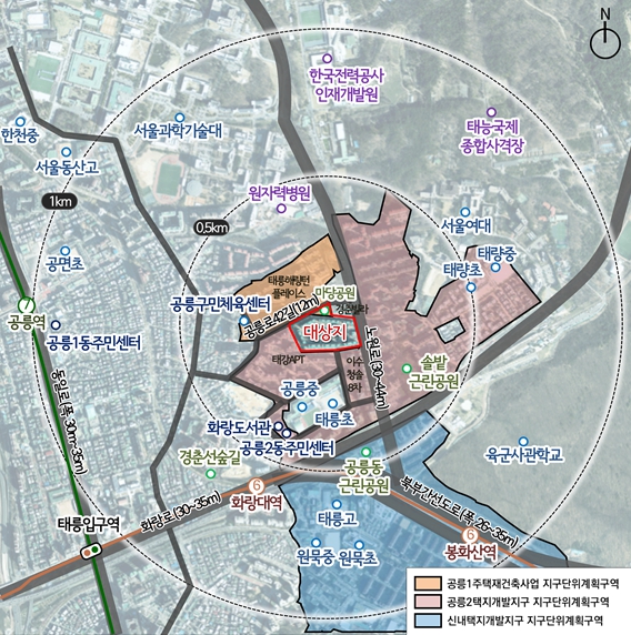 현재 노원구 일대에는 태릉우성아파트 포함해 상계보람아파트, 상계한신3차 등 총 12개 단지(약 23,000호)에서 재건축 정비사업이 진행 중이며, 2026년 정비구역 지정을 목표로 추진되고 있다.