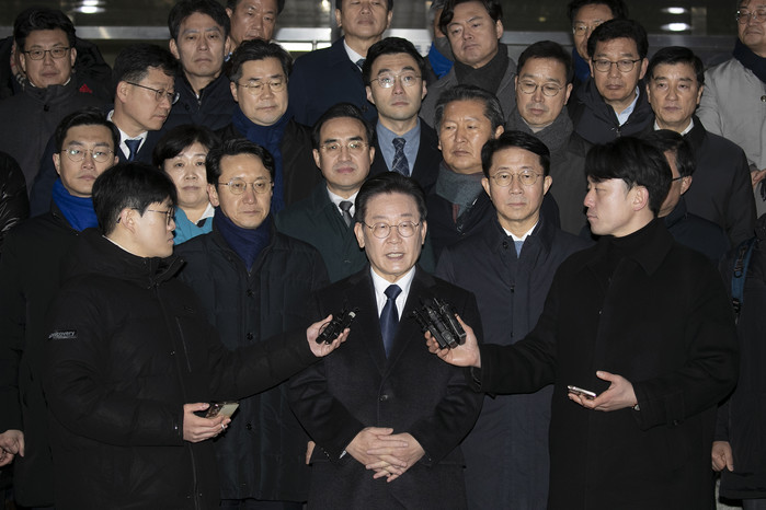 ▲ '성남FC 후원금 의혹' 사건과 관련해 더불어민주당 이재명 대표가 10일 오후 경기도 성남시 수원지방검찰청 성남지청에서 조사를 받은 뒤 입장을 밝히고 있다 2023.1.10 [공동취재]