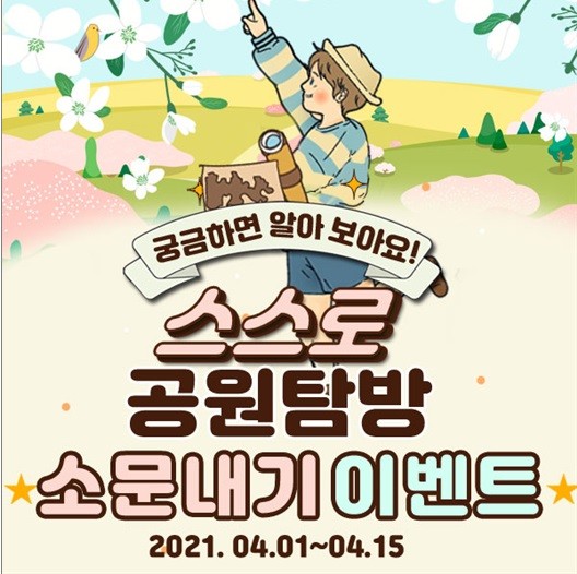 ‘스스로 공원탐방 소문내기’는 앞서 설명한 프로그램을 개인 SNS로 4.1.(목)~4.15.(목) 15일 동안 가까운 지인들에게 알리는 이벤트이다.