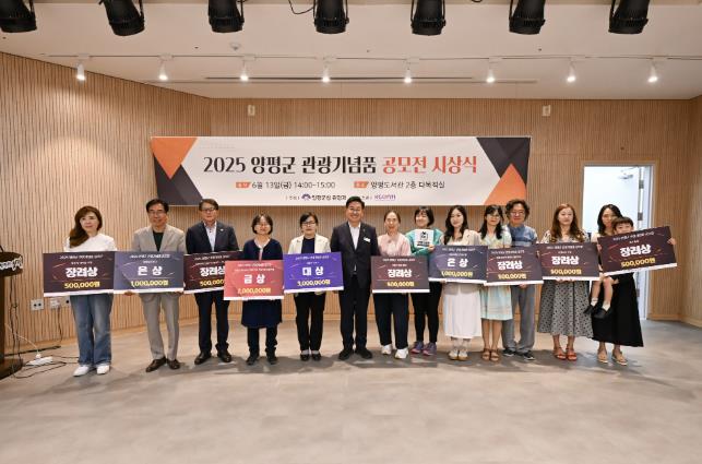 [코리아 이슈저널=김윤영 기자] 양평군은 13일 양평도서관에서 ‘2025 양평관광 기념품 공모전’ 시상식을 개최하고, 공모전을 통해 선정된 양평을 대표하는 관광기념품 10점을 시상했다고 밝혔다. 이번 시상식은 수상작 전시, 뮤지컬 갈라쇼 공연, 다과 제공 등 누구나 함께 즐길 수 있는 행사로 진행됐다.