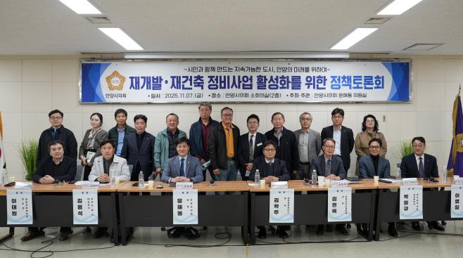 [코리아 이슈저널=홍춘표 기자] 안양시의회 윤해동 의원(더불어민주당, 관양·달안·인덕원·부림동)은 11월 7일 시의회 소회의실에서 ‘재개발·재건축 정비사업 활성화를 위한 정책토론회’를 개최했다.