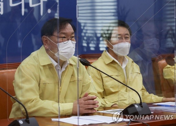 이어 김 원내대표는 "거리 두기 3단계는 일상 정지와 경제봉쇄를 의미 한다"면서 "민주당과 정부는 3단계 시행이 필요하지 않도록 방역에 총력 기울이고 있다"고 설명했다.