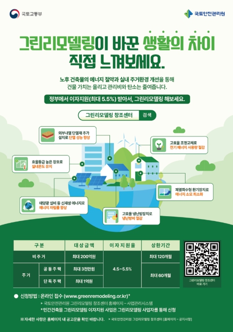 [코리아 이슈저널=최준석 기자] 건물 리모델링을 계획하는 국민들이 이자 부담을 덜고 에너지 비용까지 줄일 수 있는 지원이 다시 시작된다.