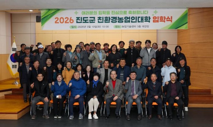 [코리아 이슈저널=김종오 기자] 진도군은 최근, 농업기술센터 대강당에서 김희수 진도군수와 진도군의회 의원, 입학생 등 약 60명이 참석한 가운데, ‘제19기 친환경농업인대학’ 입학식을 개최했다.
