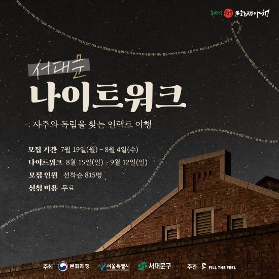 구는 ‘2021 서대문 문화재야행 - 나이트워크’ 참여자 815명을 선착순 모집한다.