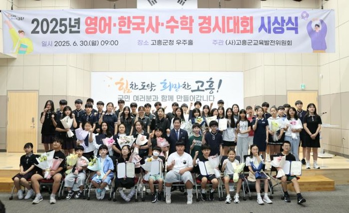 [코리아 이슈저널=김종오 기자] (사)고흥군교육발전위원회는 30일 고흥군청 우주홀에서 ‘2025년 고흥군 영어, 한국사, 수학 경시대회 시상식’을 개최했다고 밝혔다.