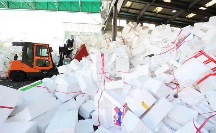산처럼 쌓인 스티로폼