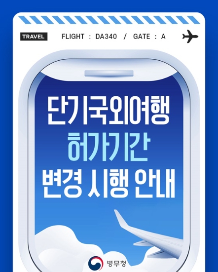 병무청, 단기국외여행 허가기간 변경 시행 안내