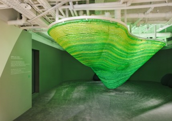 기어오르고 누워서 작품 감상하는 ‘그물놀이터’, 형광 실 재료로 특색있는 기획전시 등