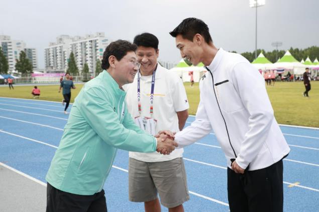 | ▲ 이상일 시장이 지난 5월 29일 구미에서 열린 '아시아육상경기선수권대회'를 찾아 우상혁 선수를 격려하는 모습 |