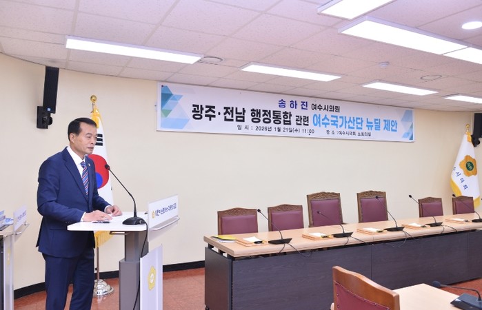 [코리아 이슈저널=홍춘표 기자] 광주·전남 행정통합 논의가 본격화되는 가운데 송하진 여수시의원(무소속·미평·만덕·삼일·묘도 지역구)이 통합의 전제 조건으로 여수국가산단을 중심으로 한 전남 동부권 산업 뉴딜을 공식 제안했다.