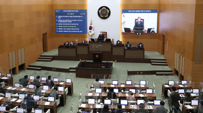 ▲ 지난 22일 서울시의회에서 본회의를 하고 있다. 2021.12.22 [연합뉴스 제공]