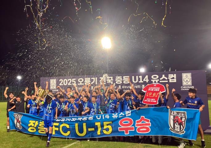 [코리아 이슈저널=김종오 기자] 장흥군 축구 스포츠클럽인 장흥FC가 충남 천안에서 열린 ‘2025 오룡기 전국 중등 축구대회’에서 저학년부(U-14) 우승을 차지했다.