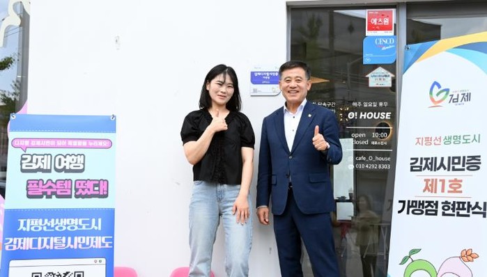 [코리아 이슈저널=김종오 기자] 김제시가 김제시민증 1호 가맹점에 현판을 증정하고 디지털시민에 대한 혜택을 본격화며 생활인구 증대를 위한 첫발을 내디뎠다.