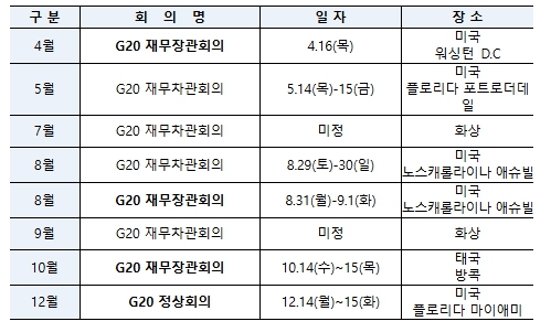 | ▲ 2026년 G20 주요 회의 일정(잠정) |