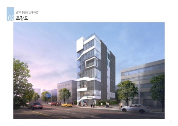 총사업비 123억9천200만 원이 투입되는 이번 사업은 '자유롭고 역동적인 청년 활동, 지역사회와 소통하는 청년교류의 장'을 표현하는 최종 설계안을 바탕으로 지하 1층∼지상 7층, 연면적 1천533.39㎡ 규모로 신축한다.