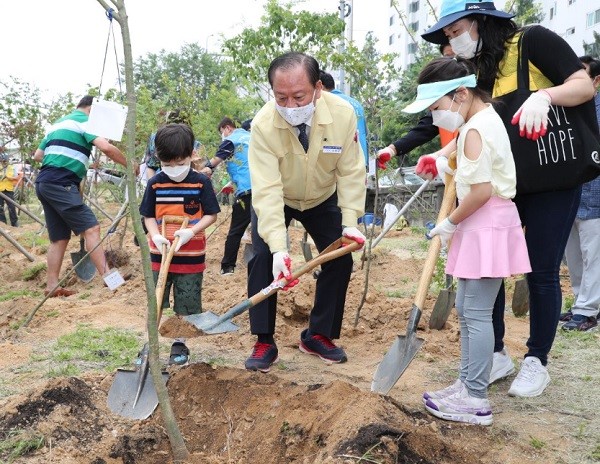 이날 오전 9시 30분부터 진행된『마포구 푸른숲 조성을 위한 500만그루 나무심기』행사에서 유동균 마포구청장은 성산2동 주민자치위원회, 마을발전위원회 등 주민 30여 명과 단풍나무 등 총 50주의 나무를 식재했다.