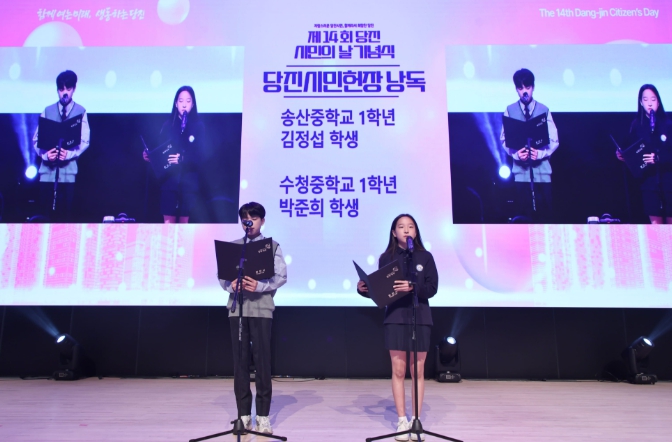 특히 시민헌장 낭독은 제14회를 맞은 해의 의미를 담아, 중학교 1학년 학생들이 참여해 미래 세대의 목소리로 당진의 희망을 전했다.