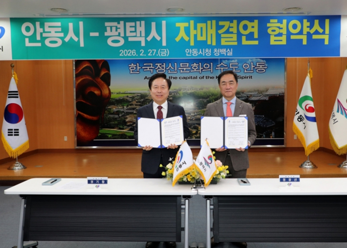 [코리아 이슈저널=김태훈 기자] 안동시는 2월 27일 안동시청에서 평택시와자매결연 협약을 체결하고 경제․문화․관광‧농업 등 전 분야에 걸친 상생발전의 닻을 올렸다.
