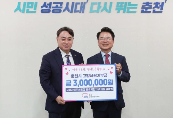 [코리아 이슈저널=최제구 기자] 김대영 국제라이온스협회 354복합지구 제55대 의장이 올해 처음으로 춘천시 고향사랑기부제 명예의 전당에 이름을 올렸다.