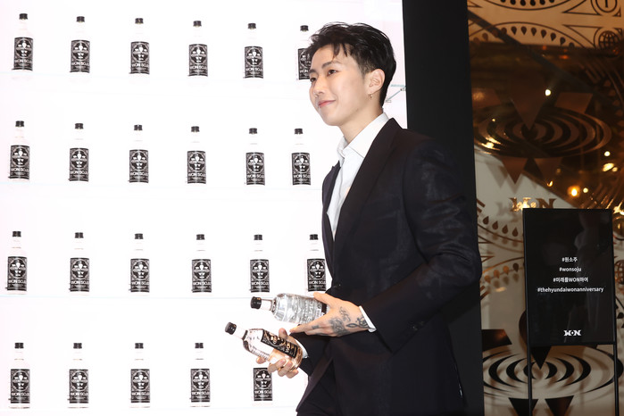 [열린의정뉴스 = 최제구 기자] 박재범 원스피리츠 대표가 25일 서울 영등포구 더현대 서울에서 열린 프리미엄 소주 브랜드 '원소주' 출시 기념 팝업 스토어 오픈 행사에 참석하고 있다. 2022.2.25
