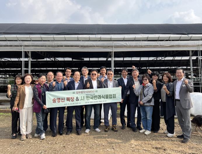 이날 협약식에는 송영신 목장 하현제 대표, (사)한국반려식물협회 조우현 회장과 회원, 경기도 축산정책과ㆍ축산진흥센터ㆍ친환경농업과ㆍ농업기술원 관계자 등 약 20여 명이 참석했으며, 전 농림축산식품부 장관도 자리를 함께해 축산 자원의 선순환과 치유농업 융합에 대한 정책적 중요성을 강조했다.
