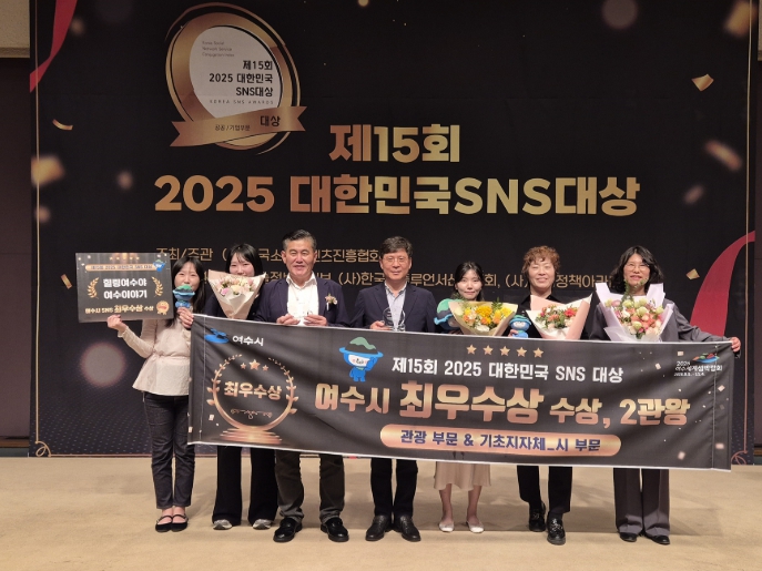 정기명 여수시장은 “‘대한민국 SNS대상’에서 10년 연속 수상하며 소통도시로 부상하게 된 원동력은 시민들의 참여와 응원 덕분”이라며 “앞으로도 2026여수세계섬박람회 성공 개최와 K-관광의 거점, 글로벌 해양관광 휴양도시로 도약할 수 있도록 대한민국을 넘어 세계인과 소통 폭을 넓혀가겠다”고 말했다.