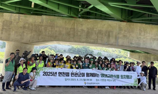 [코리아 이슈저널=홍춘표 기자] 연천읍은 지난 23일 '2025년 세계 환경의 날'을 맞아 연천읍 차탄천 일원에서 생태계 교란식물 제거 행사를 개최했다.