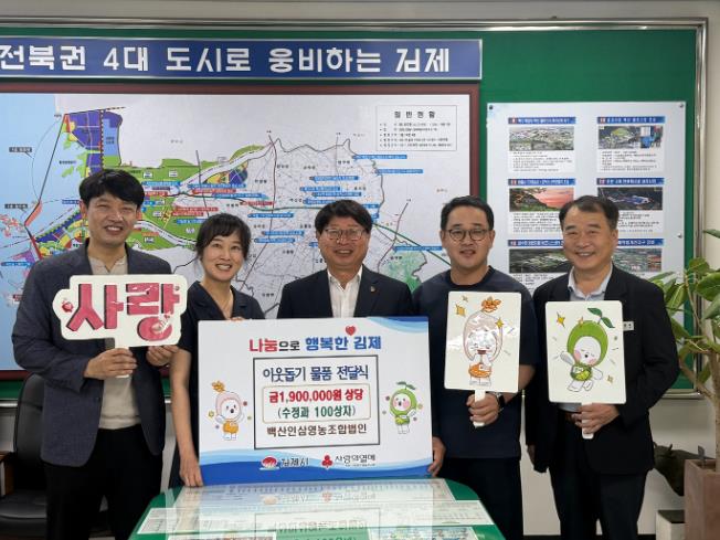 정성주 김제시장은 “백산인삼영농조합의 따뜻한 나눔에 깊이 감사드리며, 이러한 후원이 지역 내 도움이 필요한 분들에게 큰 힘이 될 것이라 믿는다”며 “김제시 모두가 행복 공동체를 만들기 위해 지속해서 노력하겠다”고 말했다.