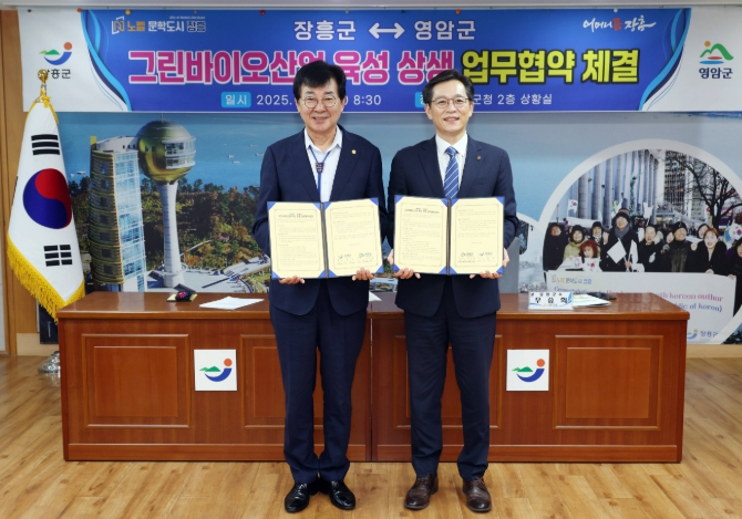 [코리아 이슈저널=김종오 기자] 장흥군과 영암군이 그린바이오 천연물산업 육성을 위한 상생 업무협약을 체결했다.