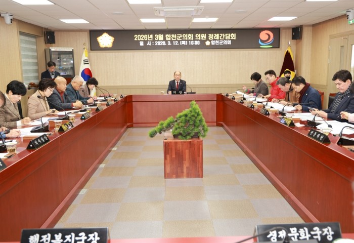 [코리아 이슈저널=김태훈 기자] 합천군의회는 12일 합천군의회 간담회장에서 2026년 3월 합천군의회 의원 정례간담회를 개최했다고 전했다.