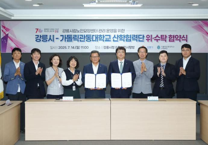 [코리아 이슈저널=최제구 기자] 강릉시는 14일 오전 11시 시청 8층 시민사랑방에서 ‘강릉시립노인요양센터 관리 운영 위‧수탁 협약식’을 개최했다.
