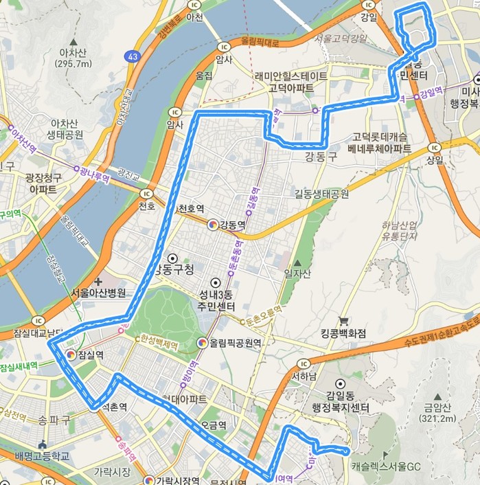 | ▲ 서울 강동구 강일동∼송파구 마천동을 운행하는 시내버스 3318번 노선도 [강동구 제공. 재판매 및 DB 금지] |