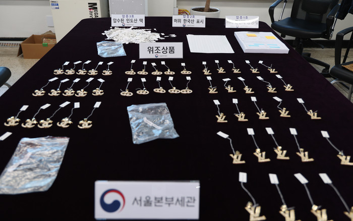 [열린의정뉴스 = 김윤영 기자] 서울세관이 저가의 인도산 반지, 목걸이 등 금 액세서리 10만여 점을 한국산으로 위장해 미국에 수출한 혐의를 받는 인도인 무역업자 D모씨 및 한국인 공범 2명을 대외무역법 위반 등으로 검거, 서울중앙지방검찰청에 불구속 송치했다고 12일 밝혔다. 사진은 서울세관에서 압수한 위조상품. 2022.12.12 [서울세관 제공. 재판매 및 DB 금지]