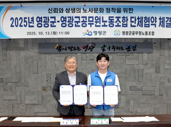 [코리아 이슈저널=김종오 기자] 영광군은 지난 10월 13일 군청 2층 소회의실에서 영광군공무원노동조합과 “2025년 단체협약식”을 체결했다.