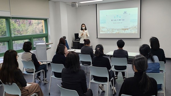 이 날 강의를 맡아준 장희숙 교수(한양여자대학교 항공과)는 외모를 가꿔라(고객과 대면하는 노하우), 내가 먼저! 눈맞춤! 밝게! 말하기 등을 주제로 참석 직원들의 옷차림 방향을 제안하고, 실제 서비스업계에서 일어나는 사례와 접목한 강의를 펼쳐 교육참여 직원들에게 큰 호응을 얻었다.